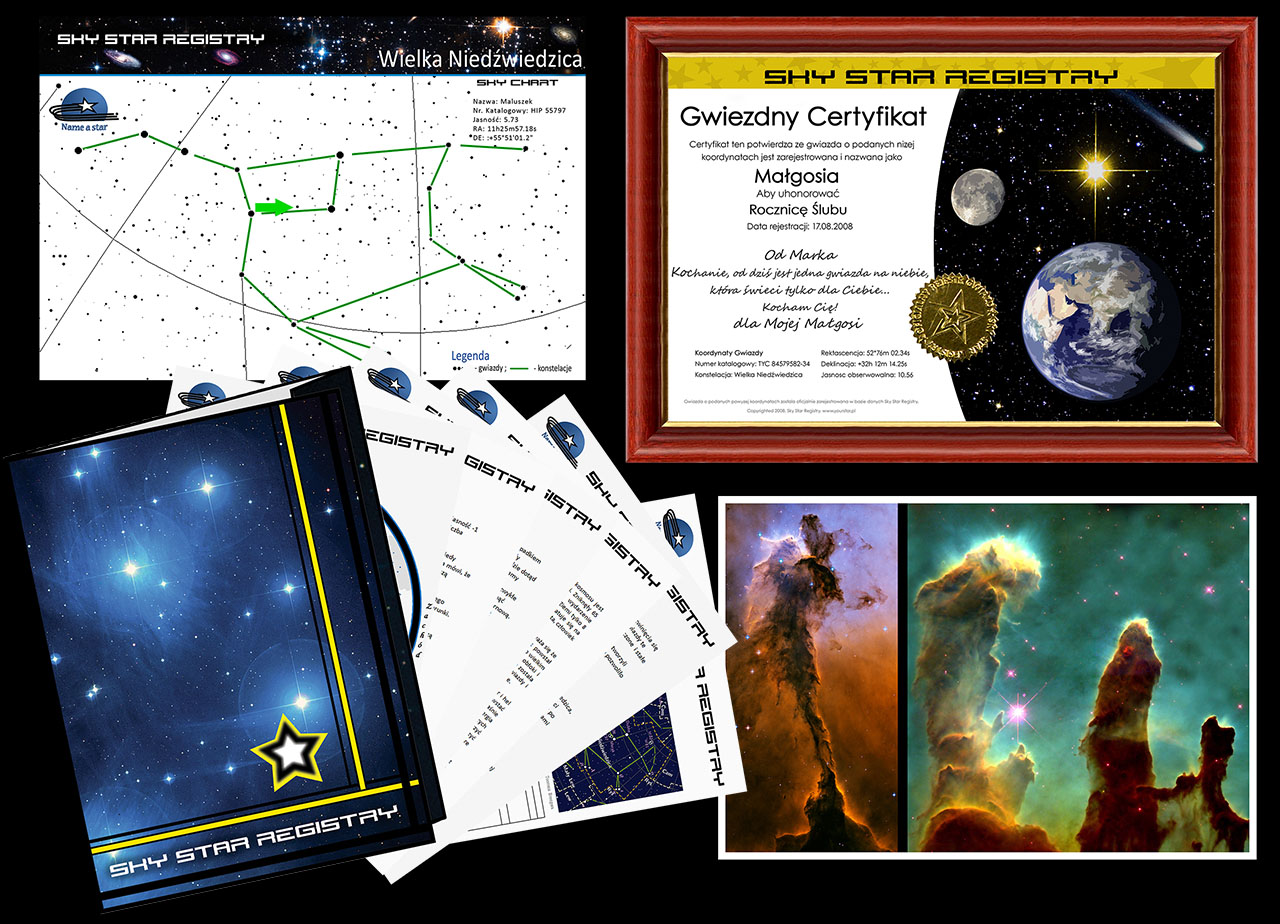 Informacje o wybranej przez Ciebie konstelacji, interesujące fakty na temat gwiazd, jak też wyjaśnienie ich astronomicznych koordynatów, krótka historia Wszechświata i tworzenia się w nim gwiazd oraz list gratulacjyny.